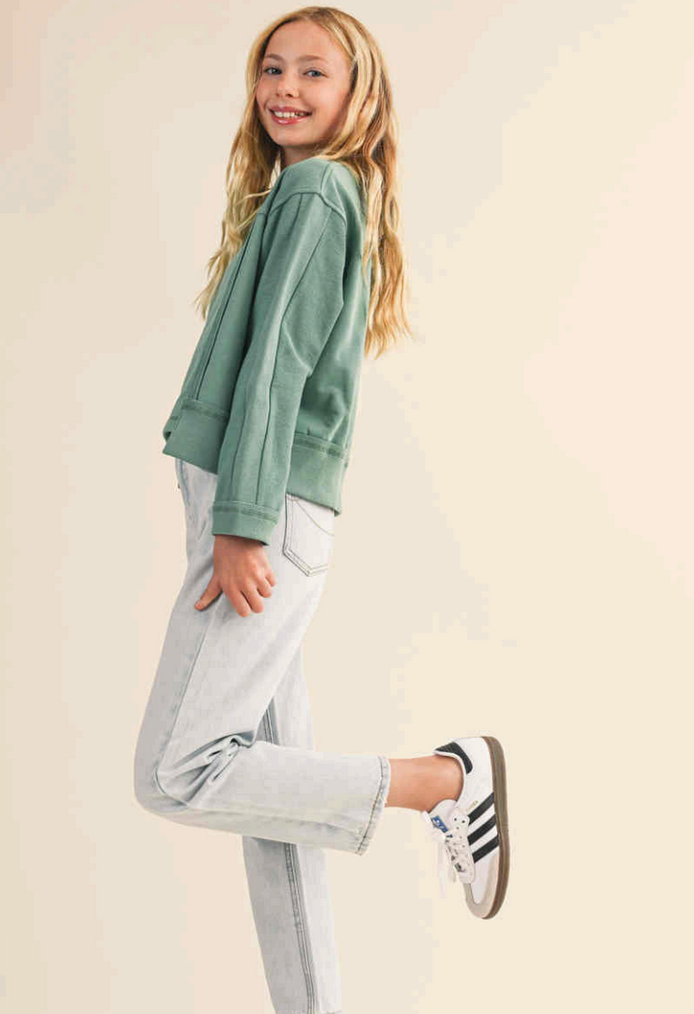 Crewneck Patch Seam Sweater Teal Green - Youth