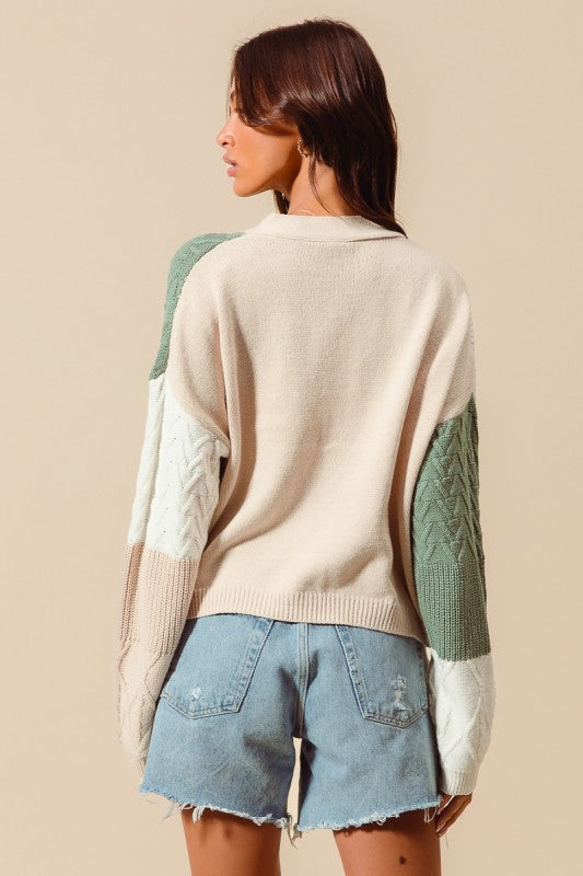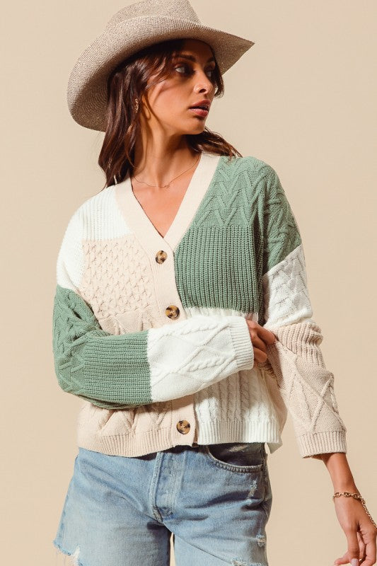 Multi-Pattern Colorblock Cardigan - Oatmeal Sage