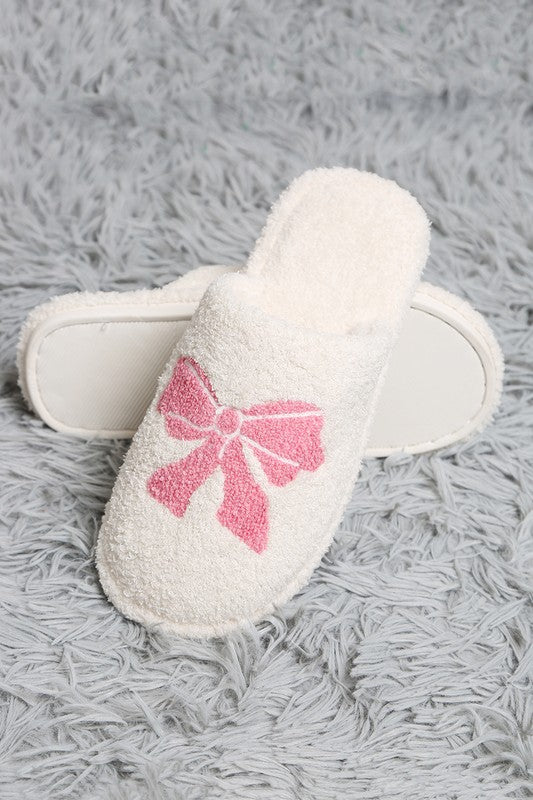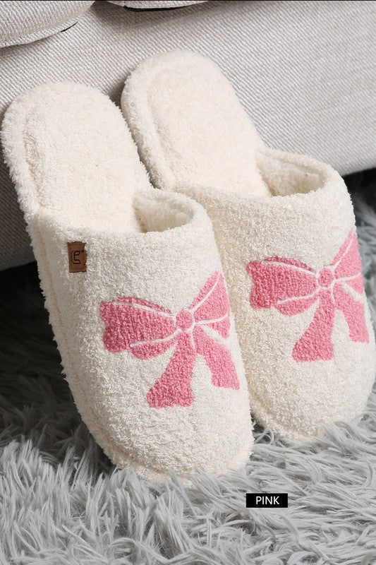 - Trendy Ribbon Bow Design - Closed Toe Cozy Indoor Slippers - 100% Polyester Microfiber