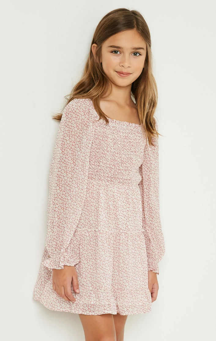 Smocked Square Neck Floral Mini Dress Pink - Youth