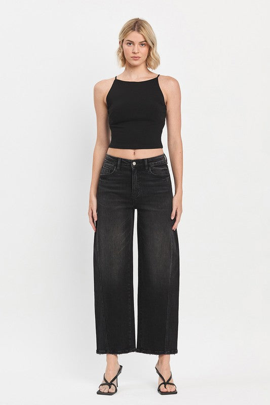 ANKLE LENGTH, BARREL JEANS F. RISE: 11" / INSEAM: 28" / LEG OPENING: 17 1/2" MODEL IS 5'10" WEARING A SIZE 26